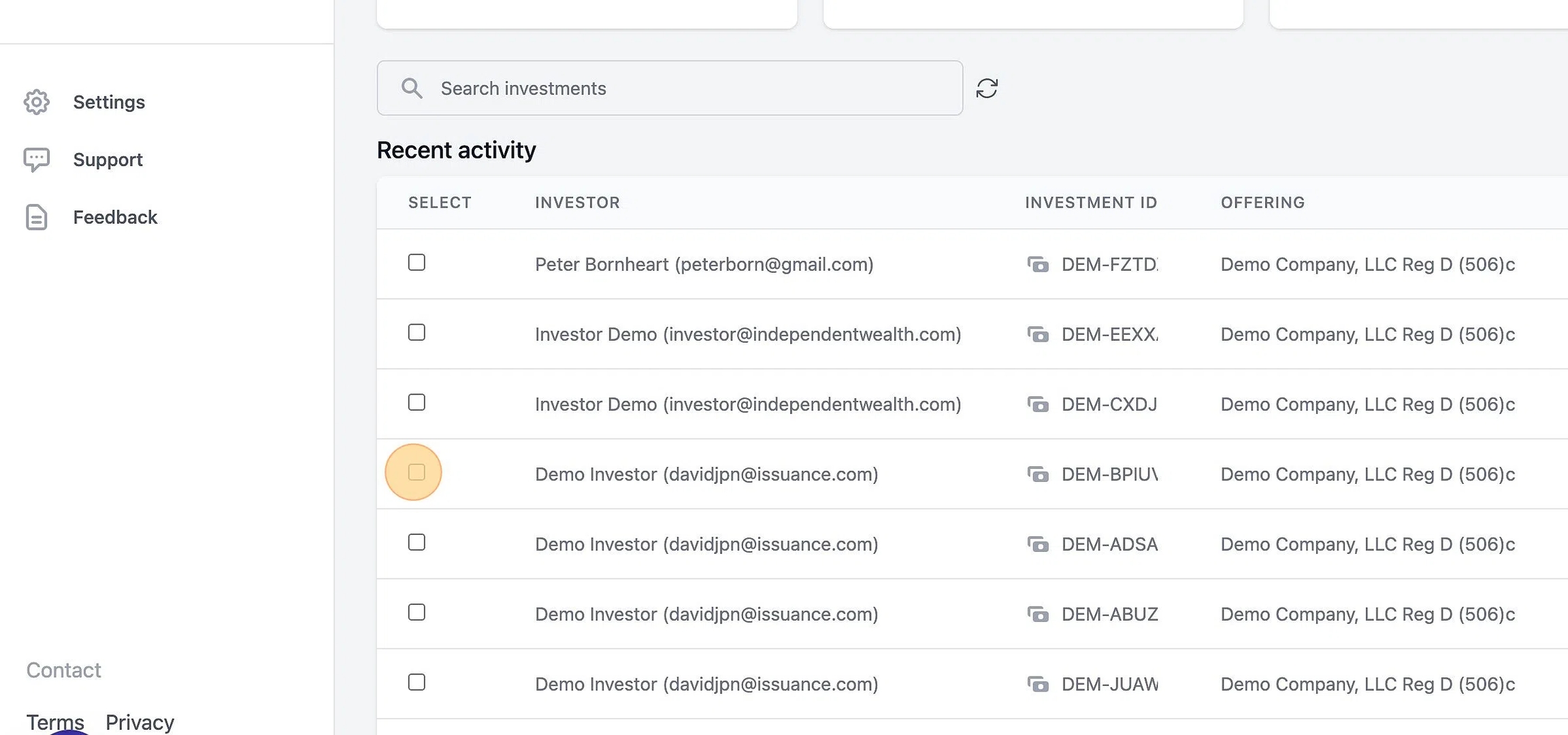 Please Note: Approving a Reg CF investment will finalize the investments. You can do this by visiting the "Investments" page on your Issuance dashboard and reviewing the investment details. Once you've reviewed the details, you can approve or cancel the investment or contact the investor with further instructions.